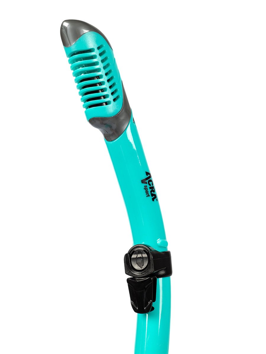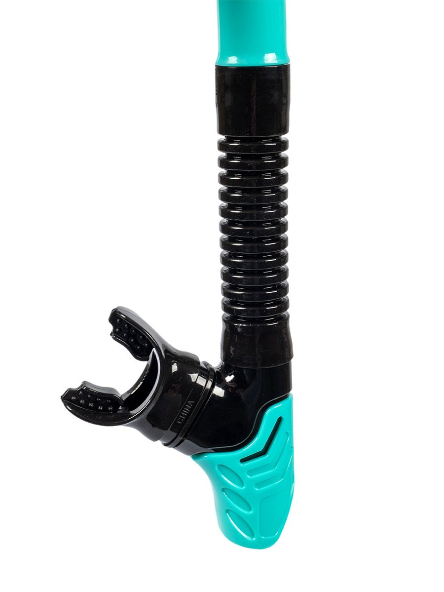 Šnorchel Dry Top na nerušené dýchanie: Vysokokvalitný šnorchel s ventilom Dry Top, ktorý uzatvára dýchaciu trubicu pri ponorení. Šnorchel Dry Top zabraňuje vniknutiu vody do dýchacej trubice, ergonomický silikónový náustok je pohodlný a odolný. Spodný výplachový ventil umožňuje rýchle vypustenie vody, takže si môžete vychutnať jednoduché a nerušené dýchanie pri potápaní pod vodou.