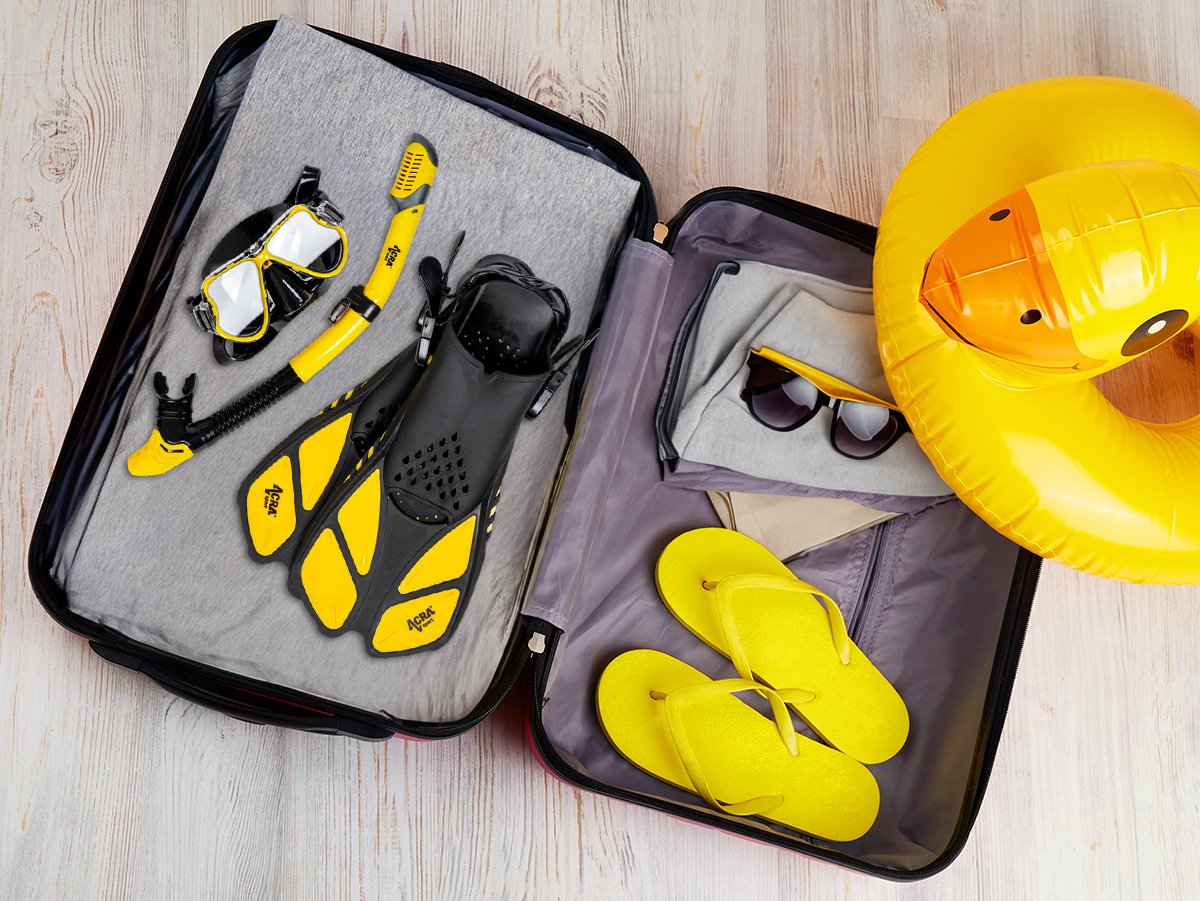 Šnorchlovacia súprava Acra Sport s nastaviteľnými plutvami, maska z tvrdeného skla s dvoma priezormi, silikónový šnorchel Dry Top a cestovná taška na vybavenie. Súprava šnorchlov Acra je dokonalým spoločníkom na cesty a je vhodná na šnorchlovanie, plávanie, potápanie a mnoho ďalšieho.