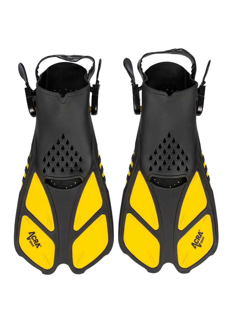 Pružné nastaviteľné potápačské plutvy: Dlhšia, ľahká a citlivá čepeľ zabezpečuje plynulý, ľahký a zároveň silný odraz. Plutvy s otvorenou pätou a nastaviteľným remienkom, vreckom na nohu a remienkom sú vyrobené z odolnej gumy, ktorá zaručuje pohodlné nosenie. Plutva Acra Sport poskytuje vynikajúcu trakciu s miernou silou kopania, ktorá je ideálna na vaše šnorchlovanie alebo potápanie.