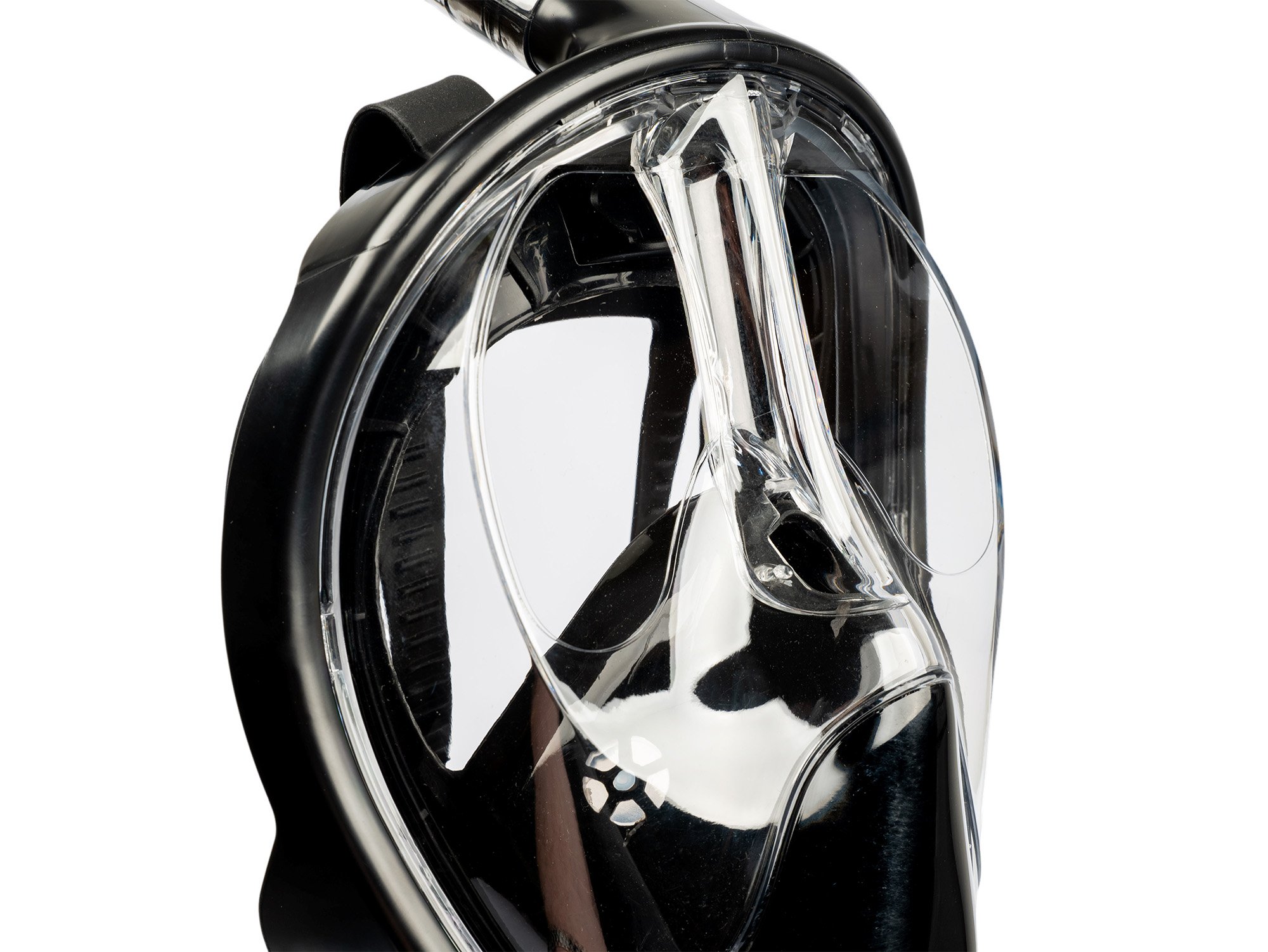 Bezpečný systém dýchania - Šnorchlovacia maska má úplne oddelený okruh na nasávanie čerstvého vzduchu a výfuk vydychovaného vzduchu, ktorý účinne zabraňuje opätovnému vdychovaniu vydychovaného oxidu uhličitého a znižuje riziko nepríjemných pocitov v dôsledku nesprávneho nasávania.