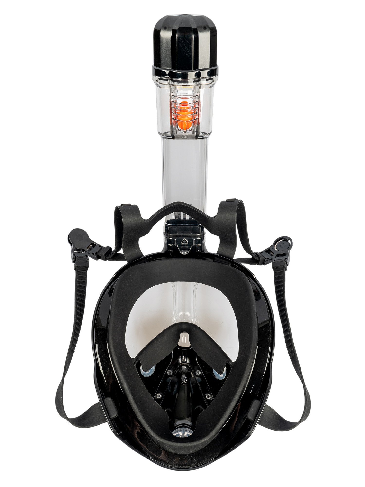 Bezpečný systém dýchania - Šnorchlovacia maska má úplne oddelený okruh na nasávanie čerstvého vzduchu a výfuk vydychovaného vzduchu, ktorý účinne zabraňuje opätovnému vdychovaniu vydychovaného oxidu uhličitého a znižuje riziko nepríjemných pocitov v dôsledku nesprávneho nasávania.