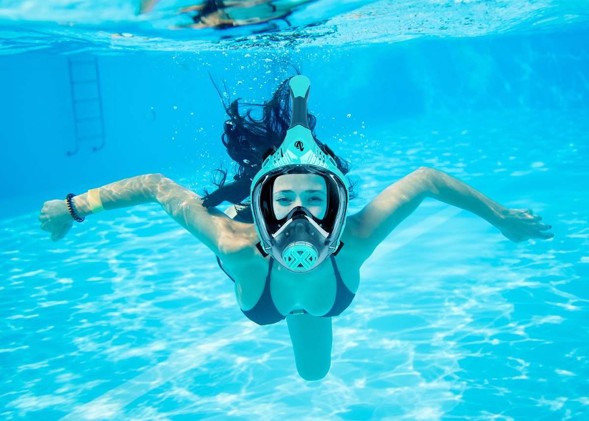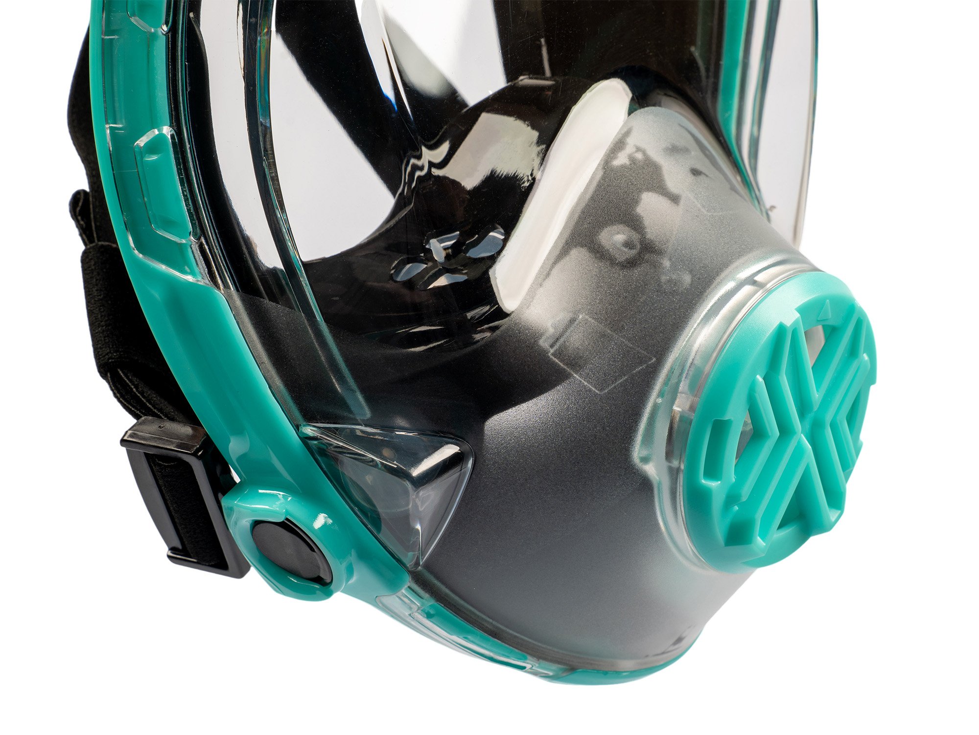 Bezpečný systém dýchania - Šnorchlovacia maska má úplne oddelený okruh na nasávanie čerstvého vzduchu a výfuk vydychovaného vzduchu, ktorý účinne zabraňuje opätovnému vdychovaniu vydychovaného oxidu uhličitého a znižuje riziko nepríjemných pocitov v dôsledku nesprávneho nasávania.