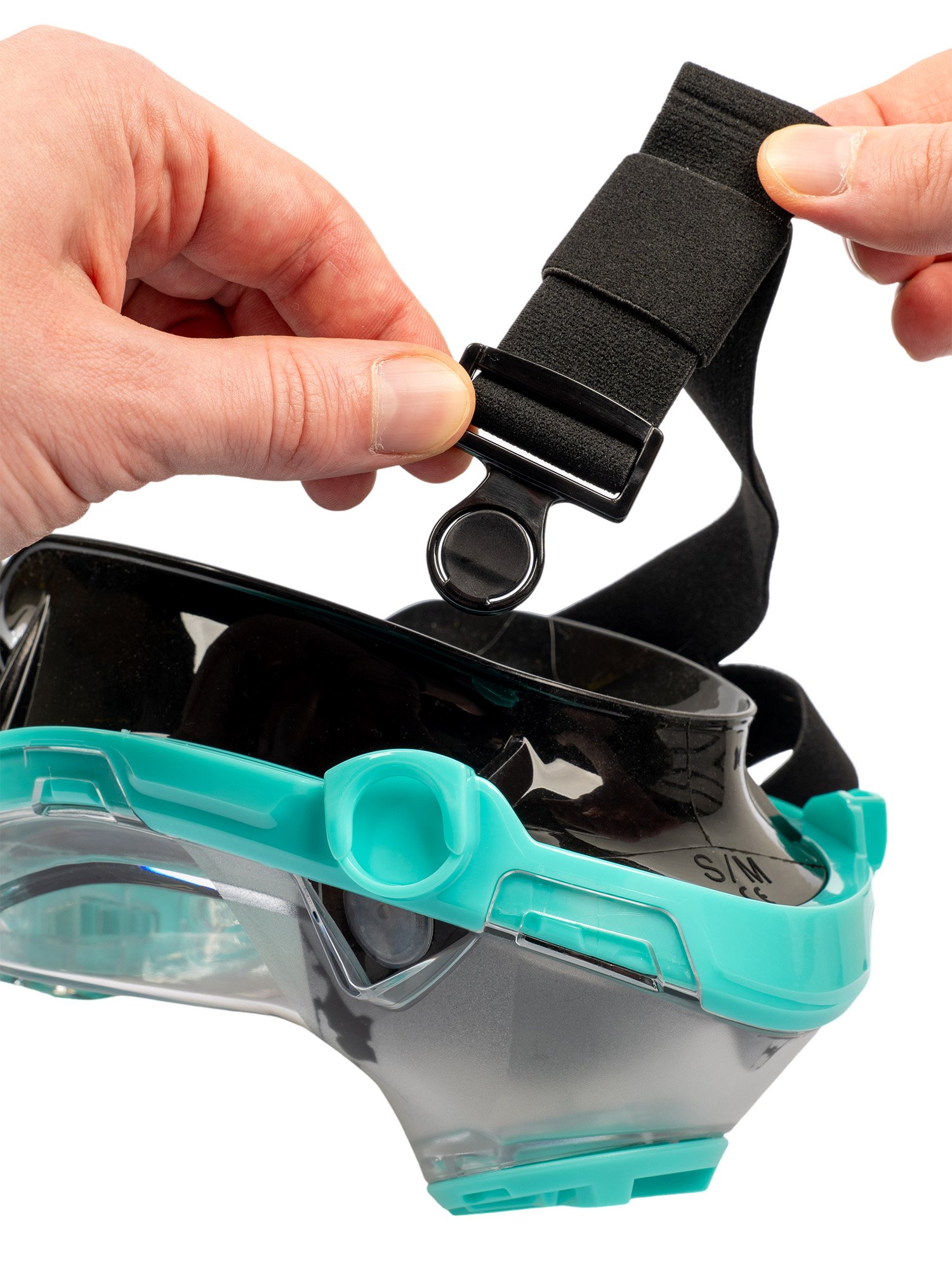 Maska proti zahmlievaniu ANTIFOG- Maska na šnorchlovanie je vybavená pokročilými funkciami proti zahmlievaniu. Oddelené prieduchy zabraňujú hromadeniu tepla a vlhkosti, ktoré môžu spôsobiť zahmlievanie, a umožňujú tak jasnejšie videnie.