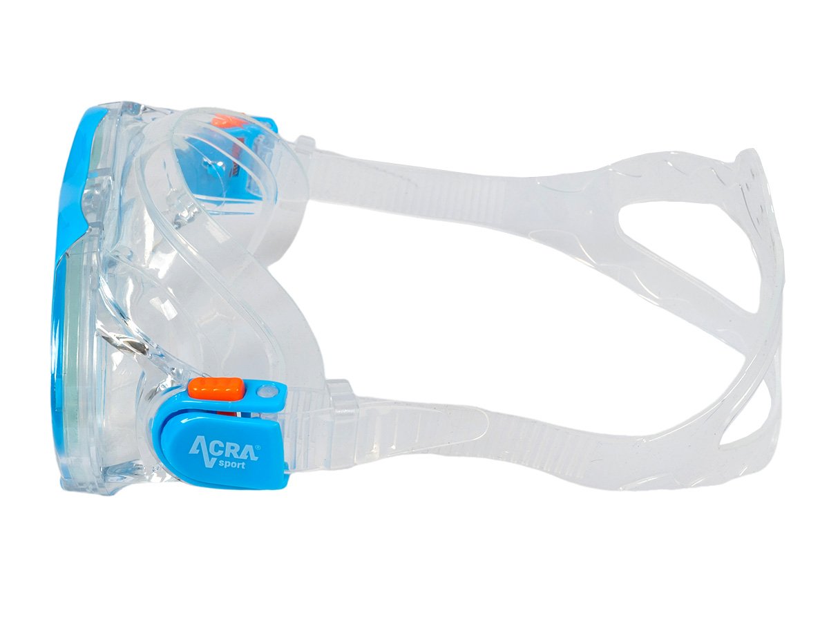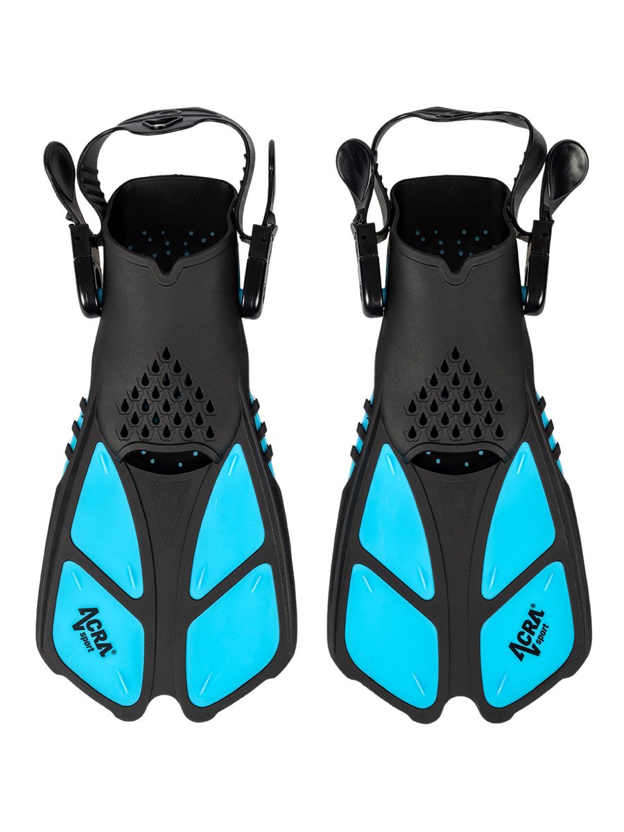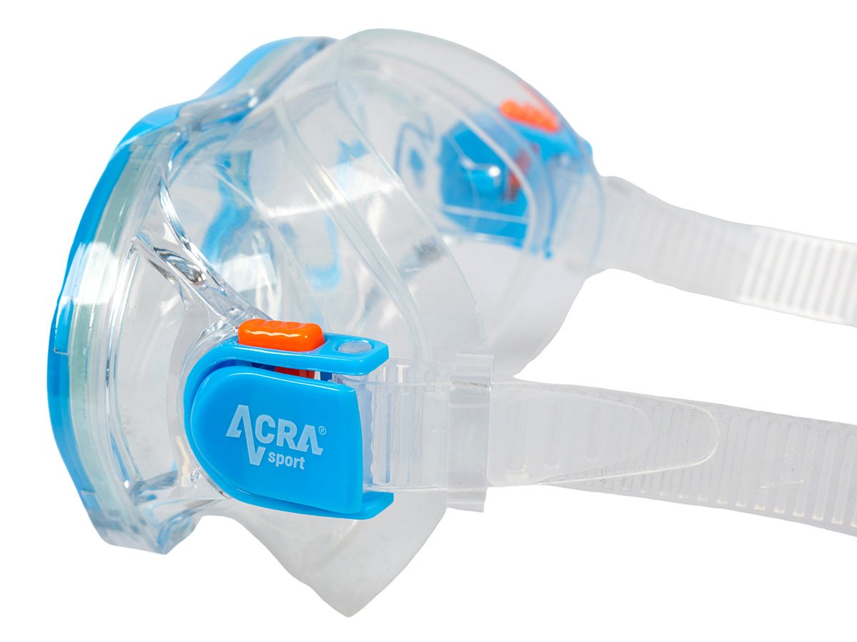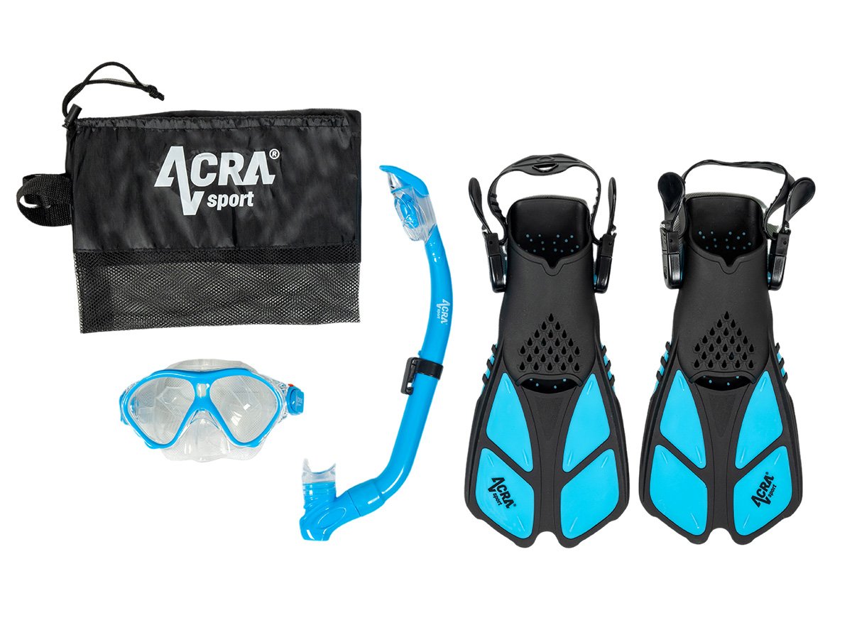 Detská sada na šnorchlovanie Acra sport obsahuje: nastaviteľné detské plutvy, suchý šnorchel, plaveckú masku.
