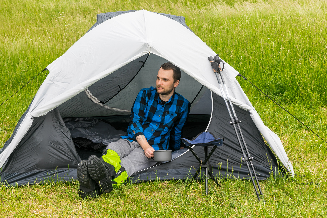 Stan pre 3 osoby - dvojitá kupola s predným a zadným vchodom (závesná spálňa a samostatná vrchná škrupina)