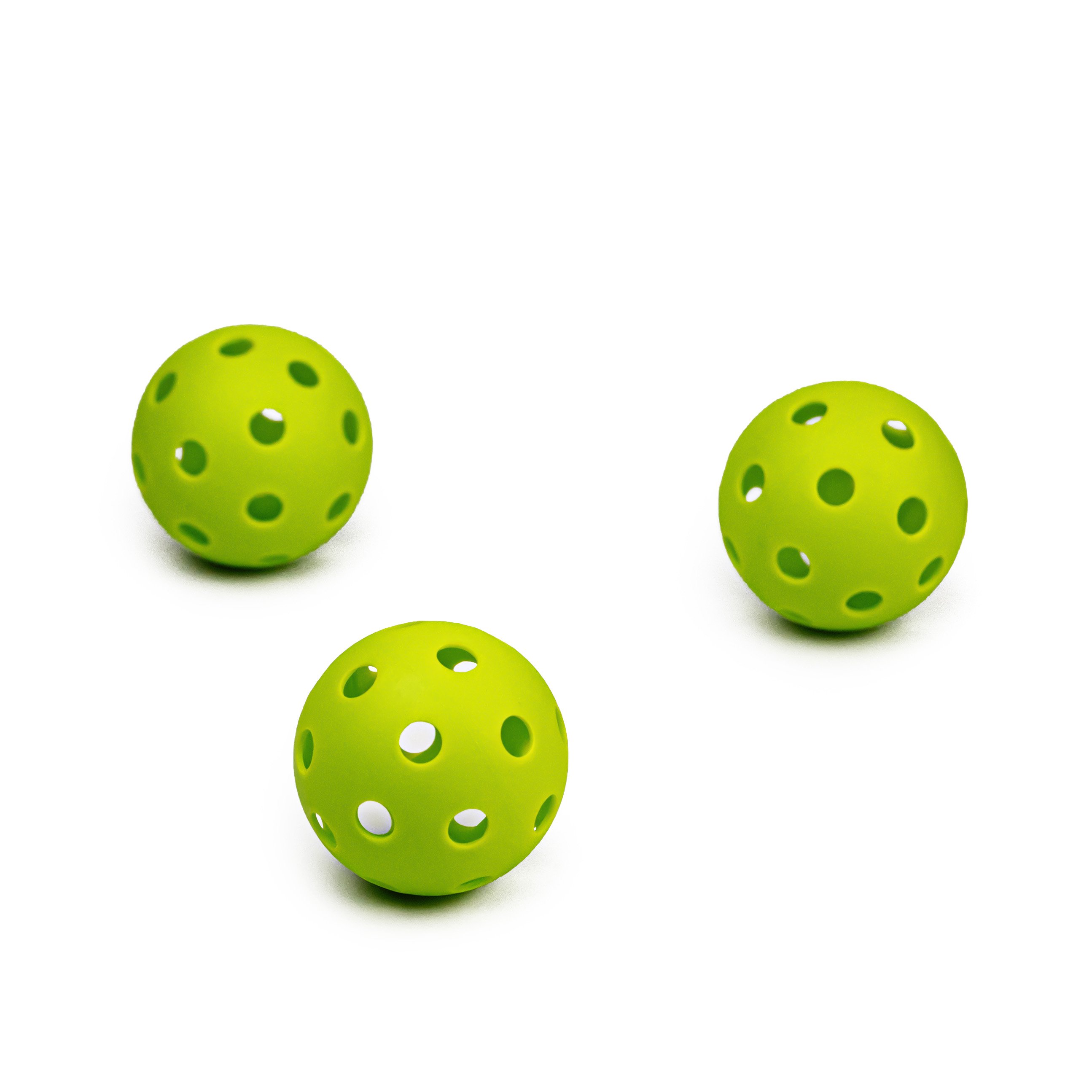 Kľúčové vlastnosti:Dve odolné rakety: Súprava obsahuje dve rakety vyrobené z vysokokvalitnej preglejky (Plywood Racket), ktorá poskytuje dobrú odolnosť a stabilný úchop. Rakety majú rozmery približne 40 x 20 x 1 cm, čo sú štandardné rozmery pre pickleballové rakety, a sú vybavené čiernou rukoväťou na pohodlné držanie.Štyri špeciálne loptičky: Súčasťou súpravy sú štyri zelené perforované loptičky, ktoré sú určené špeciálne na pickleball. Tieto loptičky majú špecifické vlastnosti pre optimálny let a odskok na kurte.Praktické balenie: Loptičky sú uložené v priedušnom sieťovanom vrecku, vďaka čomu sa ľahko prenášajú a skladujú.Univerzálne použitie: Súprava je vhodná na hru na špeciálnych pickleballových kurtoch, tenisových kurtoch s upravenou sieťou alebo na akomkoľvek rovnom povrchu, kde si môžete vymedziť ihrisko.