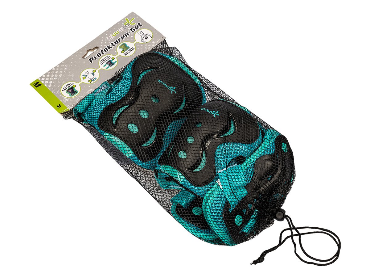 Ďalšie parametre:Hmotnosť: 0,5 kgSúčasťou sú: chrániče zápästia, chrániče kolien, chrániče lakťov - spolu 6 chráničovFarba: tyrkysováVeľkosť: M Vyberte si sadu chráničov Muuwmi pre vašu bezpečnosť a pohodlie pri jazde!