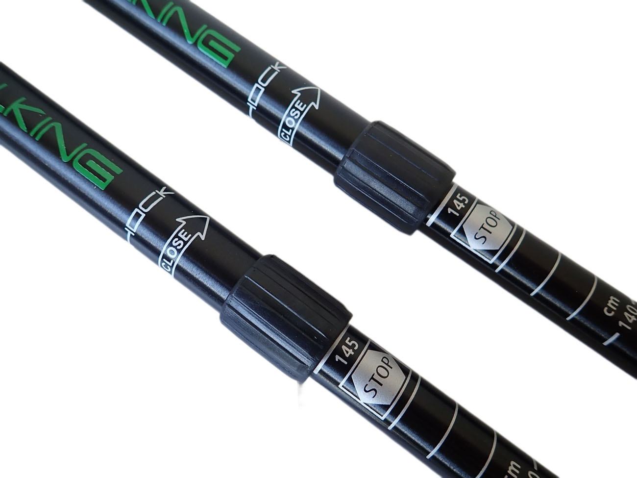 Teleskopické palice 3-dielne AL + 40% grafit, ľahké, protišmykové, 72 - 145 cm. 1 pár na karte s príslušenstvom - vymeniteľné krúžky a gumové hroty.