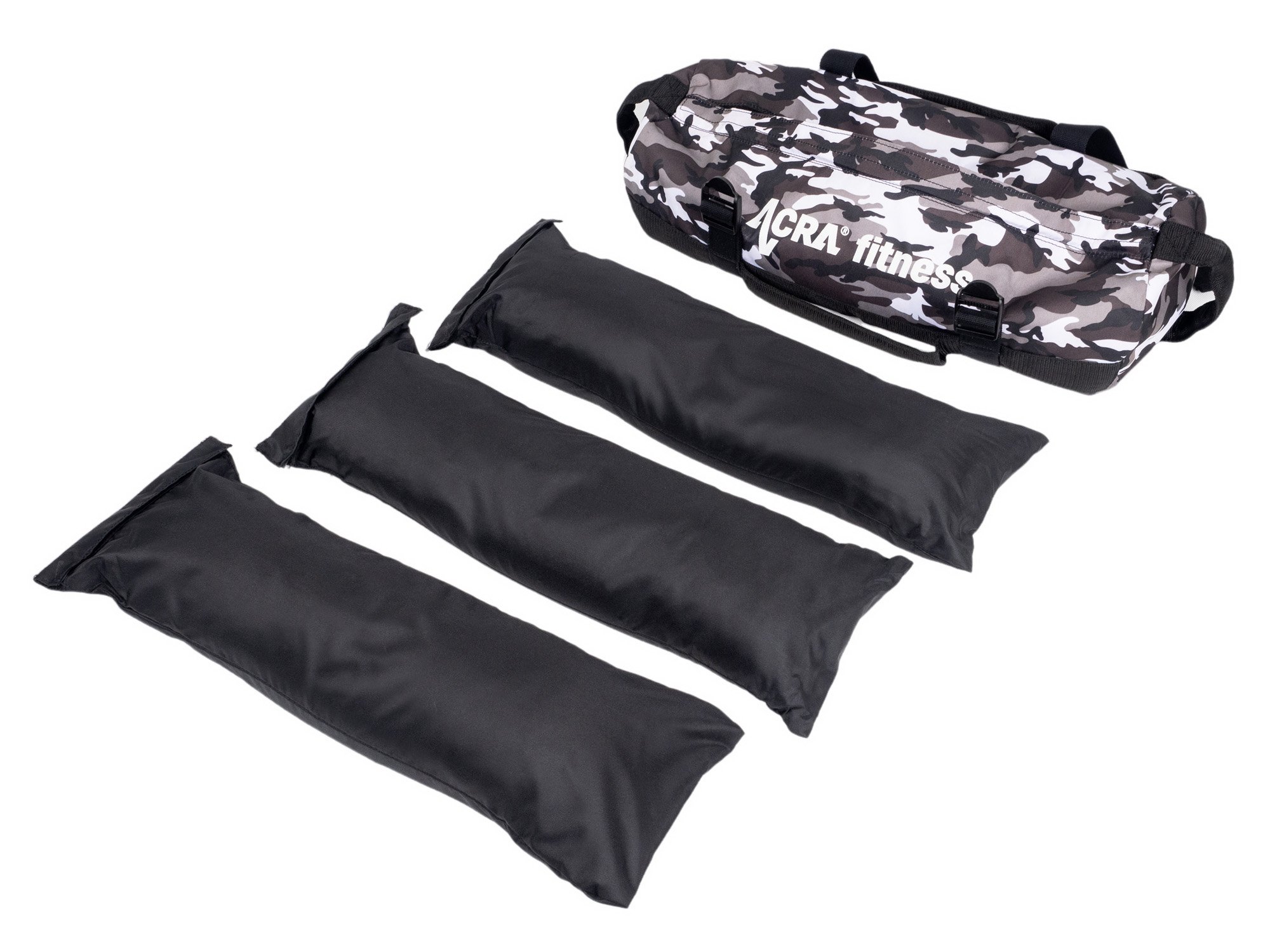 Acra Nastaviteľné fitness vrece, 20 kgNastaviteľné fitness vrece so záťažou umožňujúce individuálne prispôsobenie tréningu vďaka inovatívnemu dizajnu. Obsahuje vrecká so záťažou naplnené pieskom, ktoré sa dajú individuálne vybrať. Každé vrecko váži 6,5 kg, spolu 20 kg. Otvorenie vriec je vybavené kvalitným suchým zipsom na ochranu piesku. Vak má štyri polstrované rukoväte na pohodlné a bezpečné cvičenie, kvalitné nylonové vystuženie s dvojitým prešívaním na zvýšenie odolnosti a praktický zips na jednoduché pridávanie alebo odoberanie záťaže.