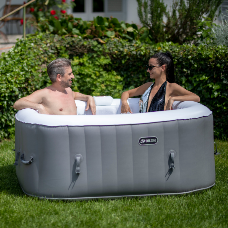 Štvorcová vírivá vaňa EASE.ZONE pre 2-4 osoby je ideálna na relaxáciu a odbúranie každodenného stresu v pohodlí vašej záhrady alebo domu. Integrované čerpadlo nezaberá vonku žiadny ďalší priestor, takže táto kúpeľ je ideálna pre tých, ktorí nemajú veľa voľného miesta.
