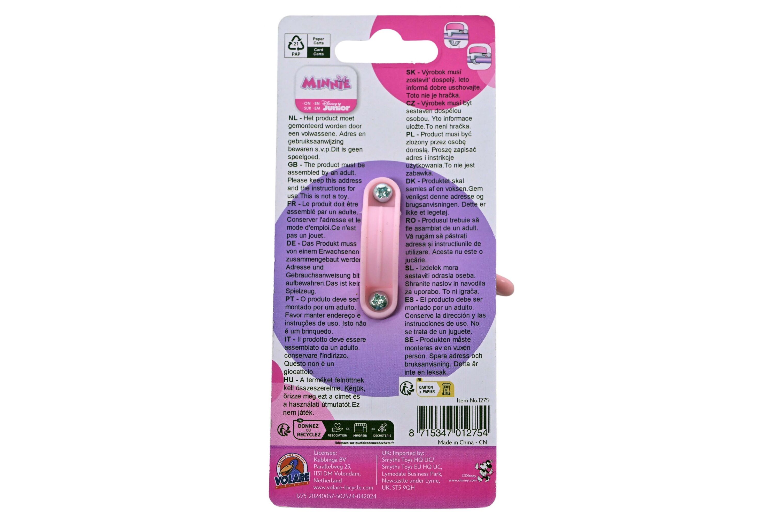 Volare - Zvonek na kolo Minnie, růžový